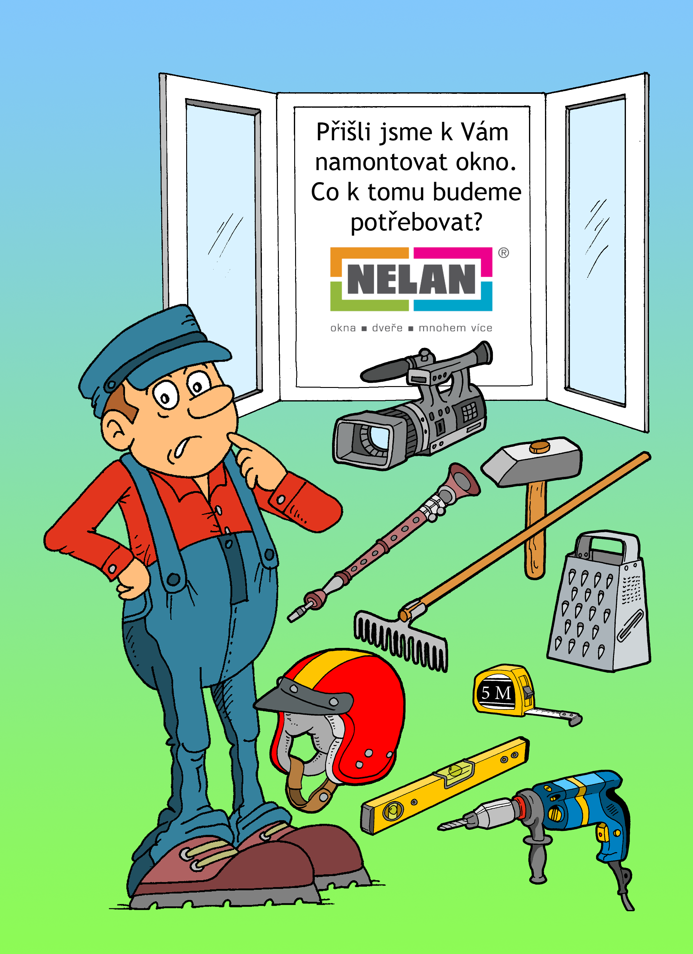 Přišli jsme k Vám namontovat nové okno. Vyberte nářadí, které k tomu budeme potřebovat.